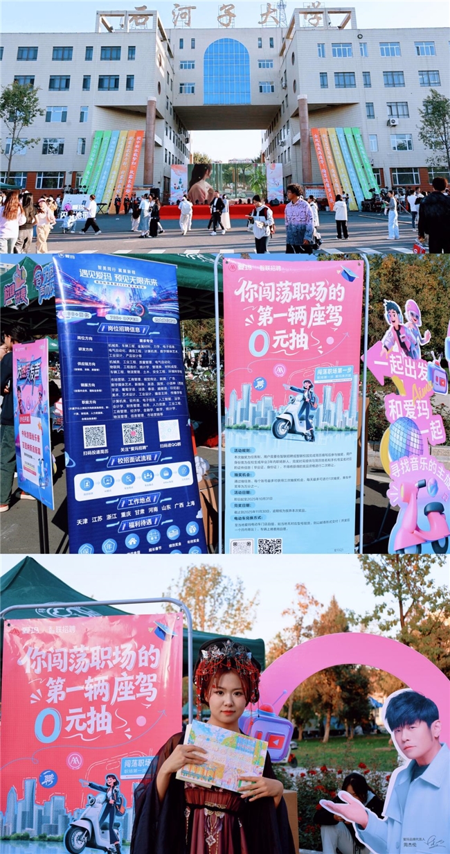 据了解,活动期间,爱玛会员小程序与爱玛闪耀地带小程序同步上线活动专区,以及包括爱玛电动车官方微博、爱玛电动车小红书官方账号在内的爱玛线上传播矩阵全面发力,与智联招聘携手同步推出抽奖活动,以广大“Z世代”喜闻乐见的任务机制吸引广大在校生与毕业三年内的职场新人,通过填写智联招聘简历的方式获得0元抽取“闯荡职场第一辆座驾”爱玛电动车的机会。同时,更在石河子大学等高校开展校园活动路演,以线上线下联动的形式更好地促进企业和人才快速对接。